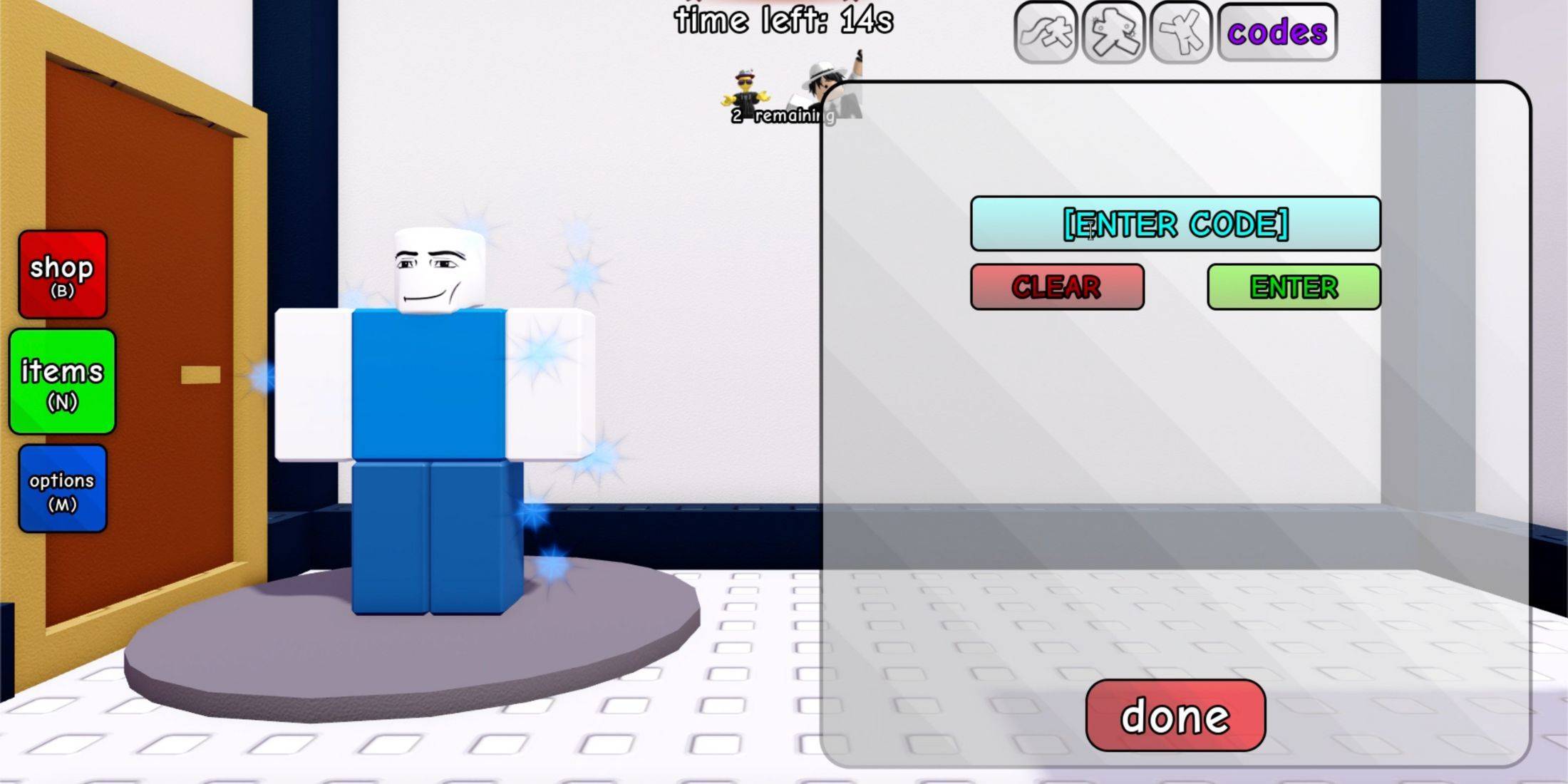 - L'interface affiche votre avatar (volet de gauche) à côté des articles équipables (volet de droite). Repérez le bouton bien visible "Codes" au-dessus de la grille d'articles